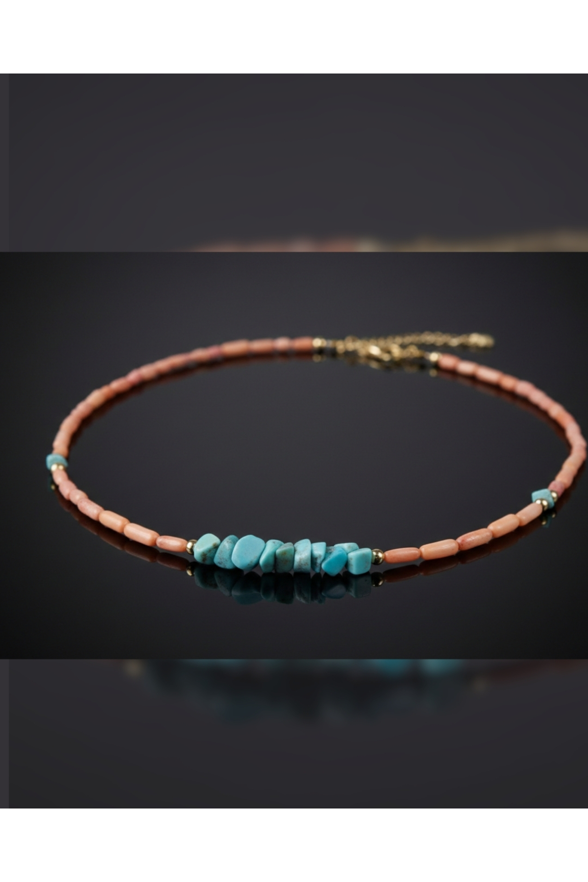 - Turkuaz ve mercan renklerinin zarif uyumuyla göz alıcı bir görünüm sunar.; - Doğal taş kullanımı sayesinde her bir kolye, eşsiz ve otantik bir tasarıma sahiptir.; - Nemli bir bezle kolayca temizlenebilir, böylece uzun süre ilk günkü gibi kalır.; - Şık kutusuyla hediye olarak tercih edildiğinde ekstra bir değer katar.; - Genç ve dinamik kadınların tarzını yansıtan modern bir aksesuardır.; - Türkiye'de üretilmiş olmasıyla yerel işçiliğin ve kalitenin bir göstergesidir.;